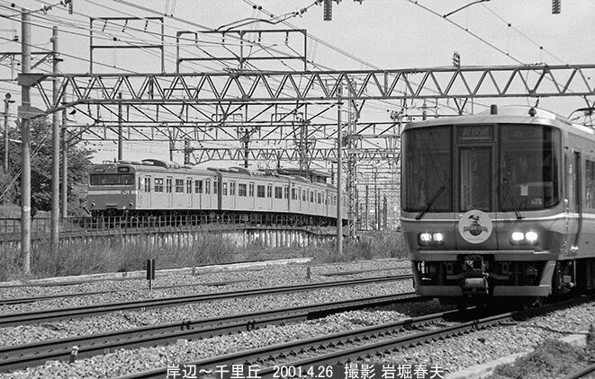 岸辺駅付近で撮っていると大阪駅に発着する山陽本線から北陸方面の列車が撮れる。当時はまだブルートレインも走っていた。さらに紀勢本線や関西空港行きの特急も撮れるし、貨物列車や試運転も横を通過するので、たまには珍しい車両に出会えることもあった。下り列車も1線空きで撮影できて、条件が良かった。