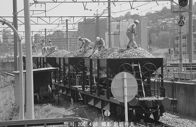 福知山線の宝塚〜生瀬間には惣川という元貨物駅があり、そこから砕石の発送が行われていた。線路に敷くバラストの輸送で、近くの採石場からベルトコンベアでホッパーに運ばれ、ここからホキ800型貨車に積み込まれた。