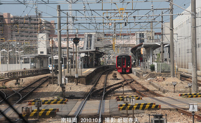 南福岡駅に隣接して運転所があり、取材でお邪魔したことがあるが、駅の方はあまり撮っていなかった。天拝山というのが有名撮影地で何度も行っているが、駅は新しくて小さかった。立派なのは二日市駅で太宰府にも近くて宿泊したこともある。