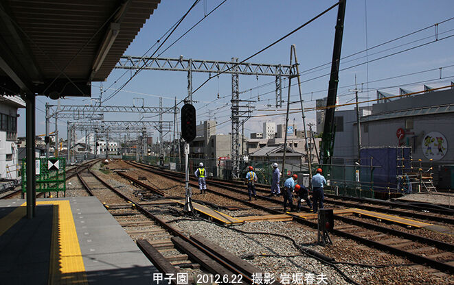 甲子園駅の東側では線路と架線の工事が続くことになる。