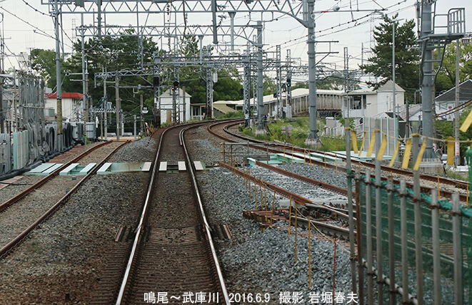 上り線の線路も敷かれていて、武庫川線へのポイントができている。