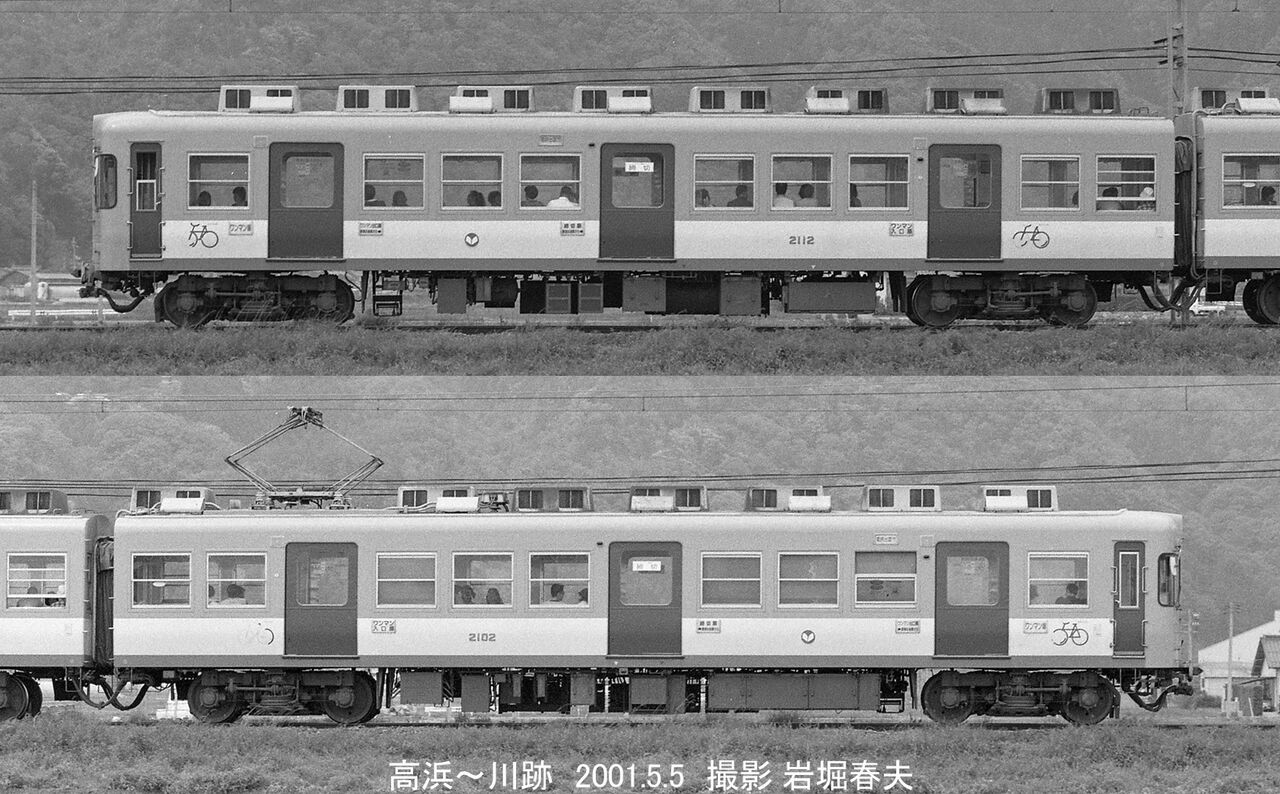 2102+ 一畑電鉄の川跡駅付近を走る2100系。