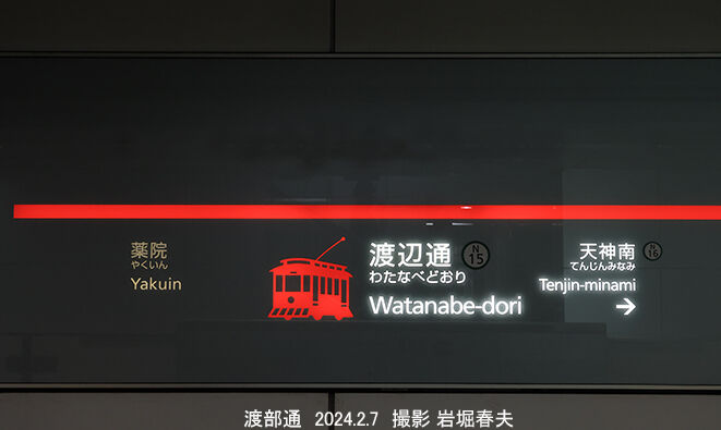 渡辺通駅には電車のイラストがあった。