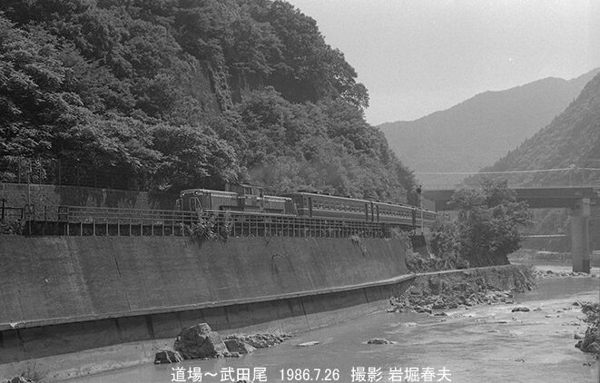 8月1日から使われる新しい武田尾駅の下を走るキハ47。