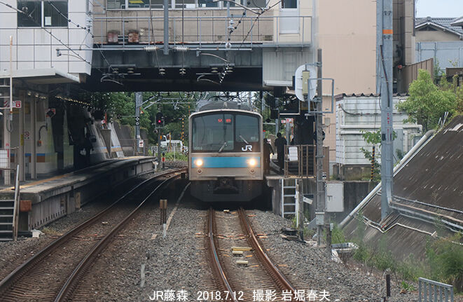 JR藤森駅で京都行きの205系が待っているが、京都よりはすでに複線である。