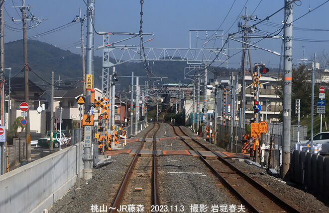 JR藤森駅は1997年に新設された駅で、京阪に藤森駅があったために、JRの駅は頭にJRを付けて区別した。この方式はJR西日本では初めてだった。最初は単線だったが、2001年には京都駅から当駅までが複線化された。そして、その先の区間で複線化工事にかかることになる。