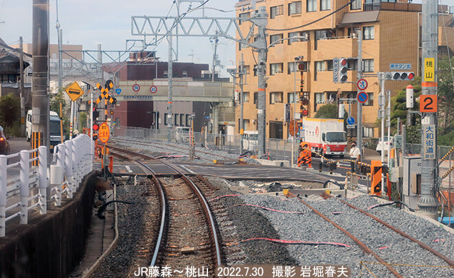 大和街道踏切でも複線化が進んでいる。