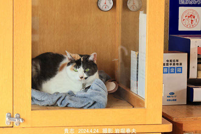 名前は知らないが、当番の猫がガラスケースの中でじっとしていた。