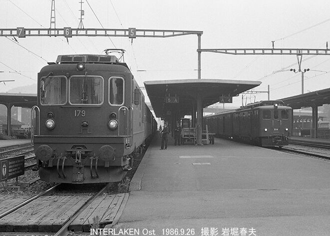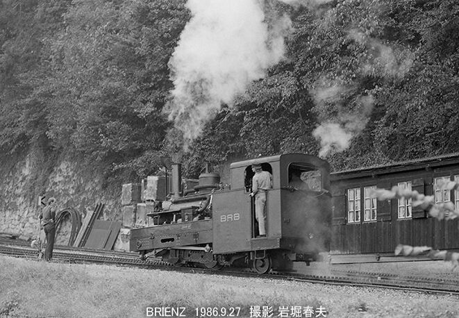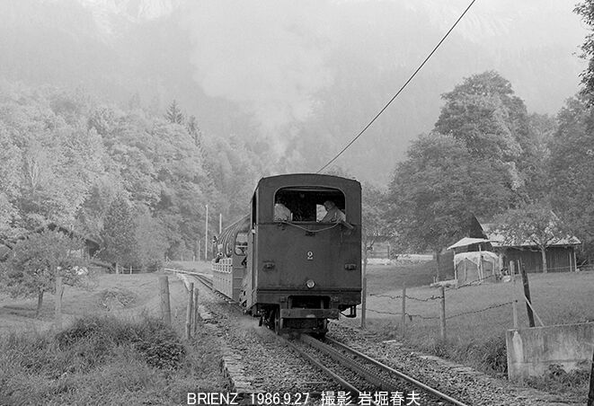 スイスの私鉄撮影ではツェルマットの次にインターラーケンへ行ったが、そこからグリンデルワルトへは向かわずに、SLの運転で有名なブリエンツへ行った。そこで泊まったホテルの部屋から車庫が見えた。構内で動いているSLの写真も撮れた。翌日は何もわからないまま沿線を歩き、途中の交換所で居座ってやってくる列車を撮影した。半分くらいはDLの運転だったが、色々な列車が来て楽しかった。