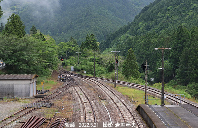 繁藤駅は昭和5年に天坪駅として開業し、昭和38年繁藤駅に改称した。駅舎は民営化時にリニューアルされている。駅前を国道32号線が通っている。
