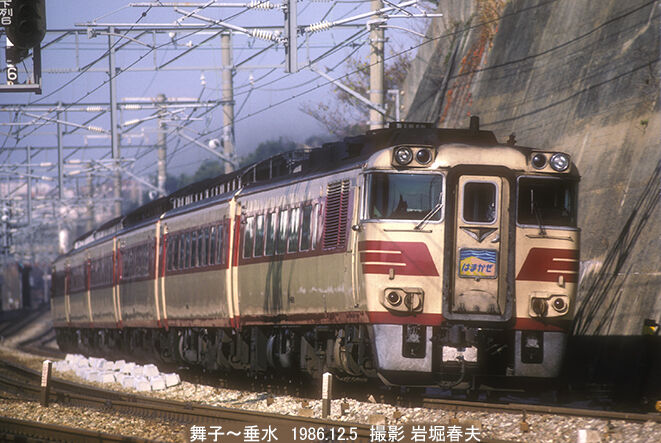 ダイヤ改正で増発された特急「はまかぜ」も通過する。播但線経由の山陰特急だが、これが意外と長寿で走り続けている。