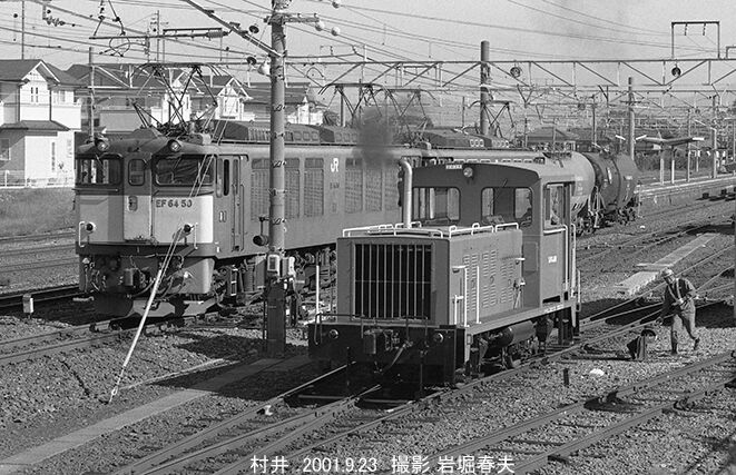 篠ノ井線の村井駅ではまだ移動機の入換え作業が見られた。当時は20トン機が使われていた。