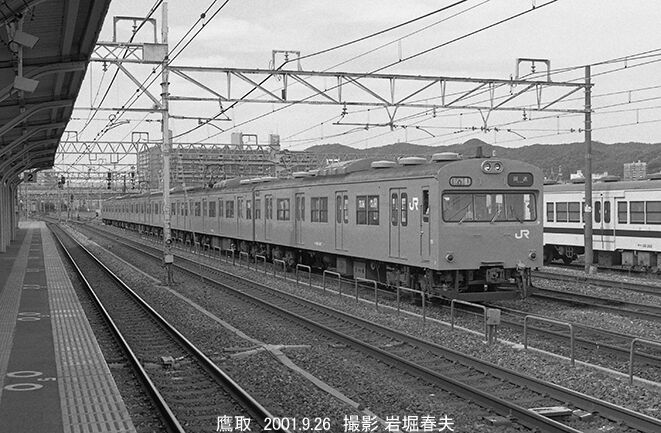 鷹取駅横に止まっている103系は和田岬線用。甲種輸送の日は退避している。