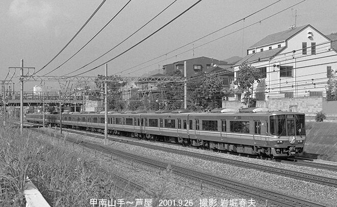 芦屋市の西端部を113系快速が通過する。
