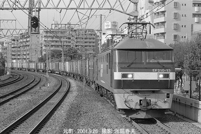 元町駅をEF210-13[岡山]の牽く上り貨物が通過する。