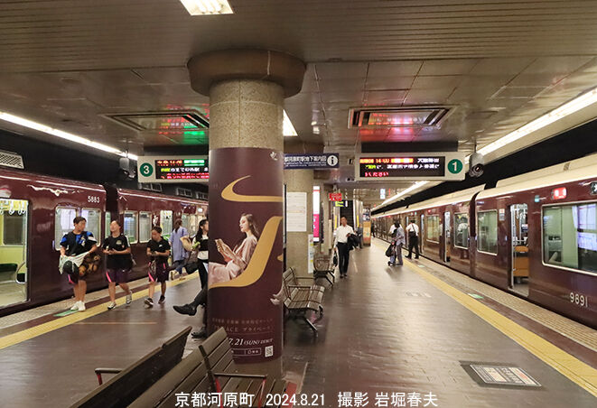 阪急京都線の終点は京都河原町駅。今はプライベースの宣伝している。7月21日から運用している。