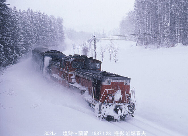 宗谷本線の塩狩駅付近にユースホステルに泊まり、翌日は塩狩峠の雪景色を撮影した。ブルートレインになった急行「宗谷」と「天北」が走ってくるのが魅力だった。さらにキハ54の急行「礼文」も 登場していた。