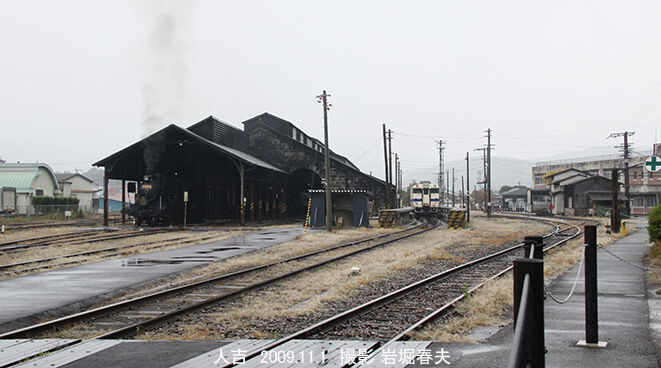 人吉駅にはかつて機関区があり、多くの機関車が配置されていた。石造りの古い機関庫だけが残されている。