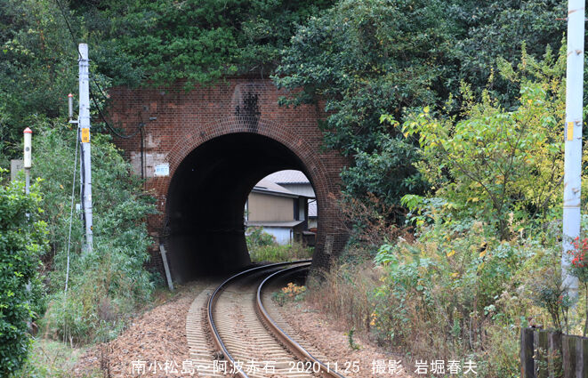 煉瓦造りの赤石隧道。この区間は阿南鉄道によって大正5年に開通した。
