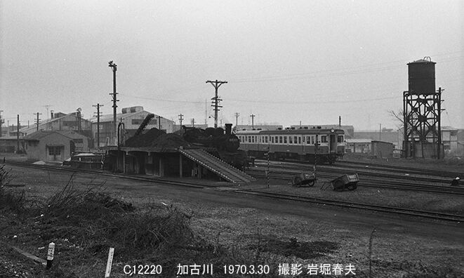 加古川駅の西側には車両基地がある。当時は加古川線管理所である。車窓から撮っていた写真だが、このような施設の写真も貴重である。小さく写っているSLのナンバーはC12230だった。