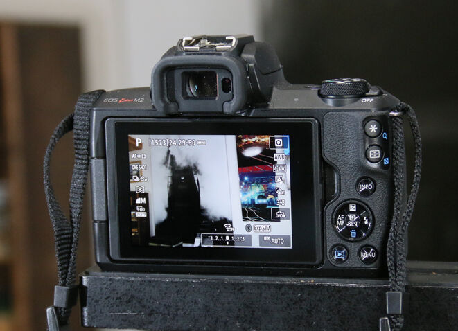EOSkissM2の背面。ファインダーでも普通に撮影できる。これでシャッター速度や絞りを設定してでも撮影できるのがいい。とりあえずまだプログラムオートで撮っているのだが。