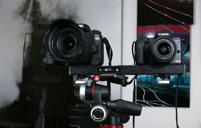 最近買った二台のデジタルカメラ。スリックの平行プレートは懐かしい。
