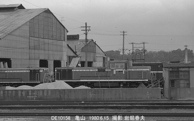 DE10158[亀山]の客車入換え。関西本線の名古屋よりが電化するのは1982年で、それまで旧型客車が使われていた。