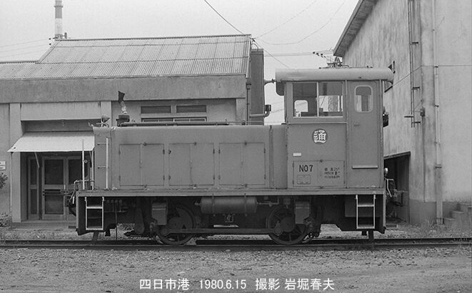 それから塩浜へ行く。専用線の一番先が石原産業でB6がいた工場になる。ここは日車25トン機がいた。さらに四日市港駅へ行き、日通のNo7という日立25トン機が撮れた。まだ可動橋の先には行っていない。
