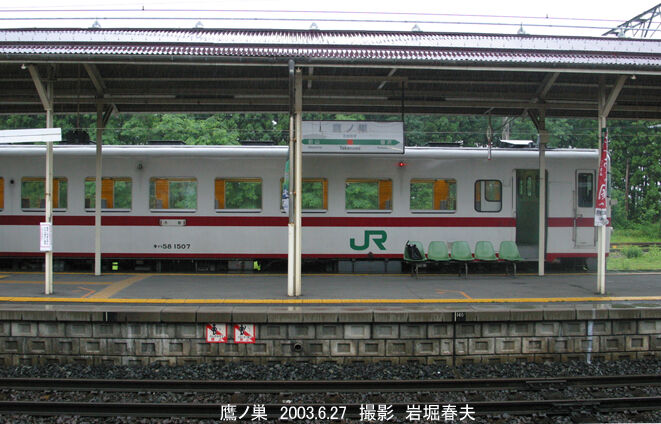 大館行きのキハ58が止まっていた。この頃は行先サボも撮っていた。