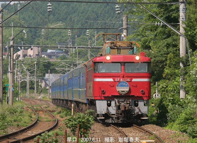 早口駅付近を走るEF81牽引の「あけぼの」。