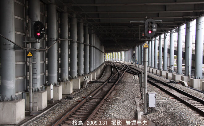 桜島駅の手前はこうなっている。
