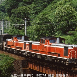電化した伯備線を二日間にわたって撮影した。まだ貨物列車や旅客列車にはDD51が使われていたが、電化されているので特急は381系の「やくも」が運転されていて、一部の貨物列車はEF64が牽いていた。さらに普通は115系電車が使われ、クモユニも連結していた。 二日目の午 ...